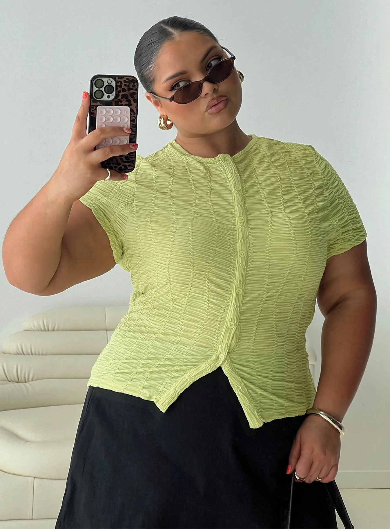 Suzu Textured Top Green Curve